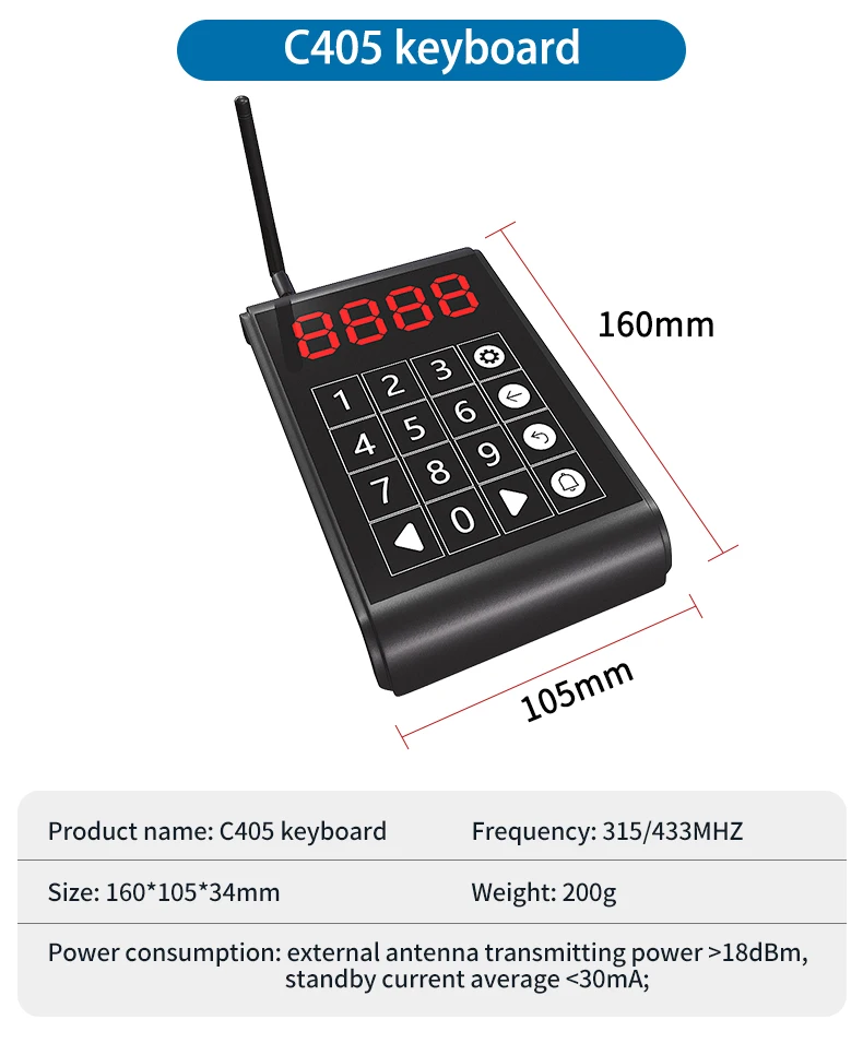 جهاز النداء اللاسلكي للمطاعم مقاوم للماء، جهاز النداء في طابور الاتصال، نظام النداء للضيوف